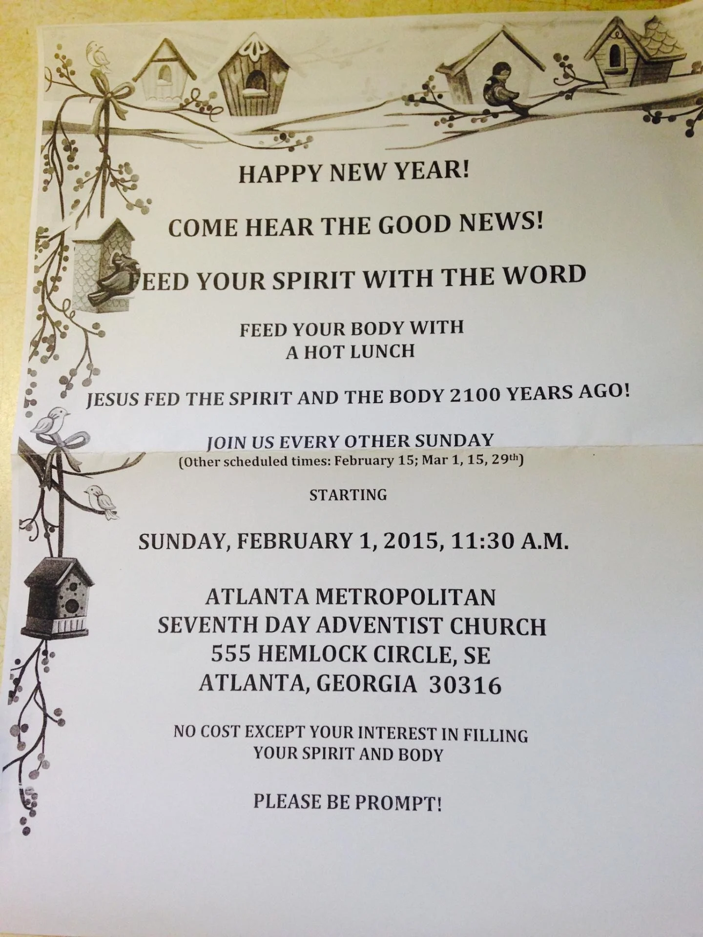 In a recent article from Alabama local news, the Huntsville First Seventh-day Adventist church has started a “bit shorter, more informal and more focused” service on Sundays. The Huntsville Adventist church isn’t the only church to initiate this Sunday worship practice. The Atlanta Metropolitan Seventh-day Adventist Church has also started Sunday services as well (see inserts below). Do you suppose that a similar method may have been used two thousand years ago to ruin a faithful church?