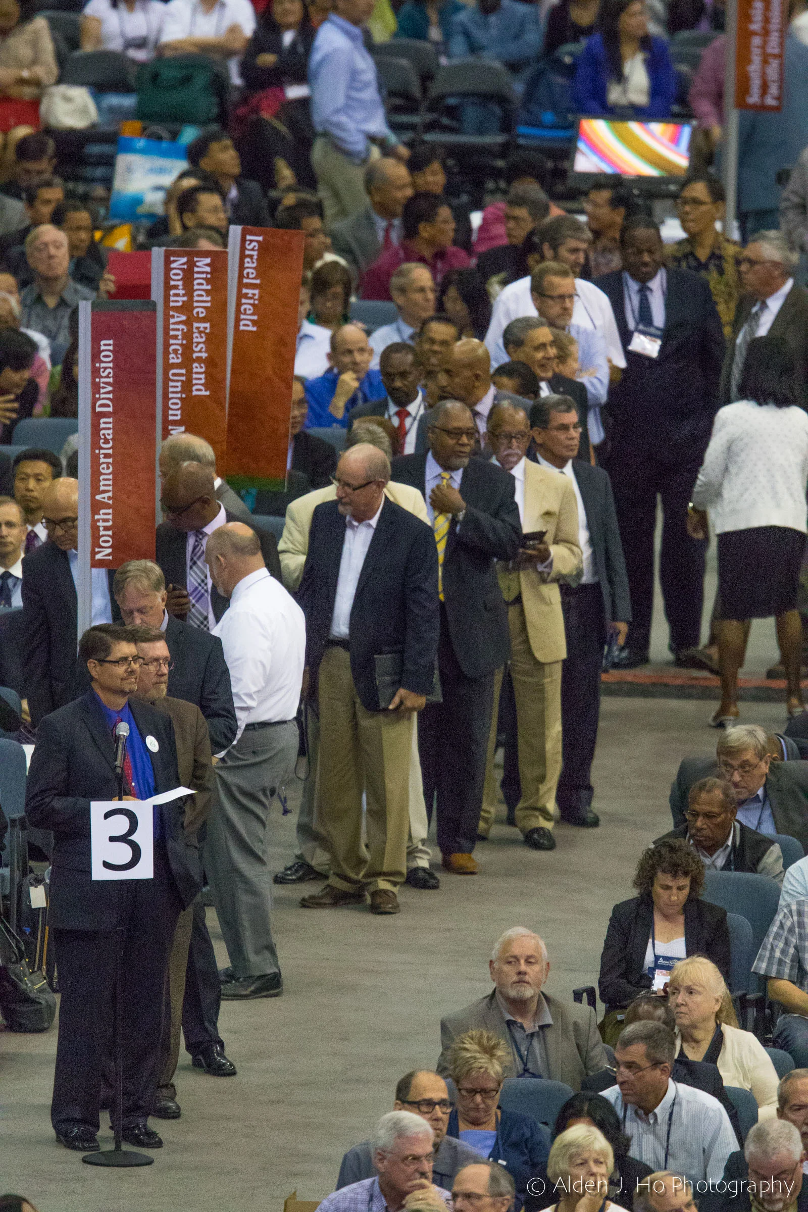 “With all humility and with respect I speak to my brothers and sisters,” Wilson said. “Most of you know already where I stand on this issue. I humbly submit that my views are rather well known, and I believe very biblically based. Plainly said, but I will not refer to them after this. I don’t want anyone to misunderstand. I have heard the angst and the emotional deep feeling by so many. I think we all hold these views rather strongly. But let me give you a very strong, pastoral appeal. I believe we need to stay together as a church in making a united decision, not separately. We have had a fair and open process. Our real challenge for the future, Brother Chair, is to maintain a sweet spirit. After the vote is when we really will be tested, whichever way it goes. I want us to focus on the mission, and upon evangelism and not continue agitation on either side for this issue. The mission of the church is so precious to all of us. We have been entrusted with the proclamation of the Three Angels Messages and today we are reading Revelation 18, the fourth angel. My dear Brother Chair and the rest, I will be praying. Let us stay together.”