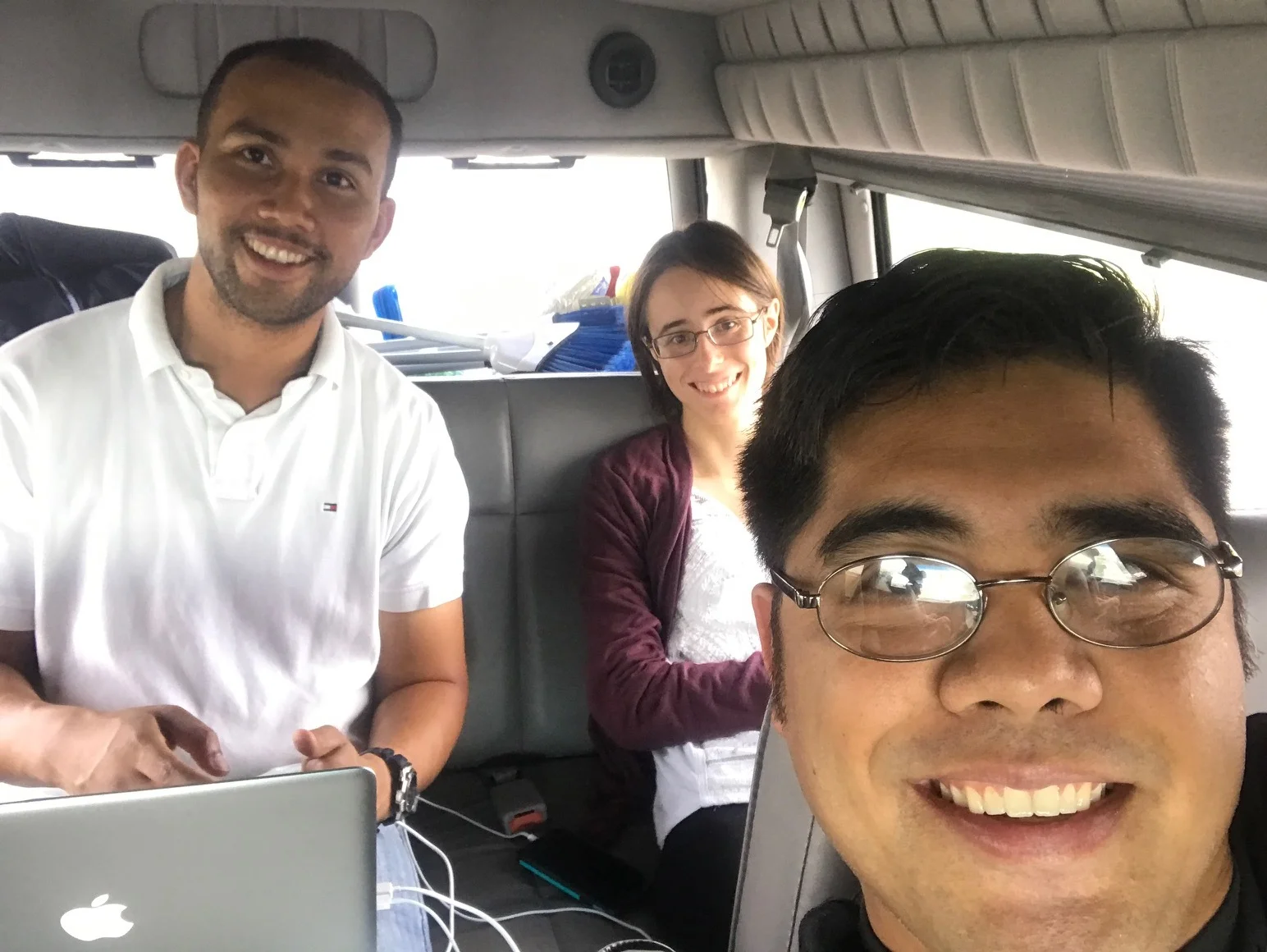 The author, along with Chris and Hannah Chung (L to R) traveling from Fort Worth to Houston, Texas.