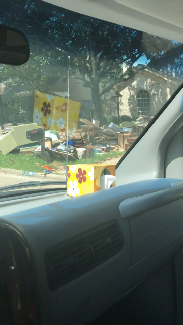 We packed our supplies in our van and made the five-hour drive from Fort Worth, Texas, down to Houston. We arrived during the evening, The city looked like it was business as usual, and we saw no immediate indications even that it flooded there, except car dealership signs that said “Our cars are not flood damaged!”