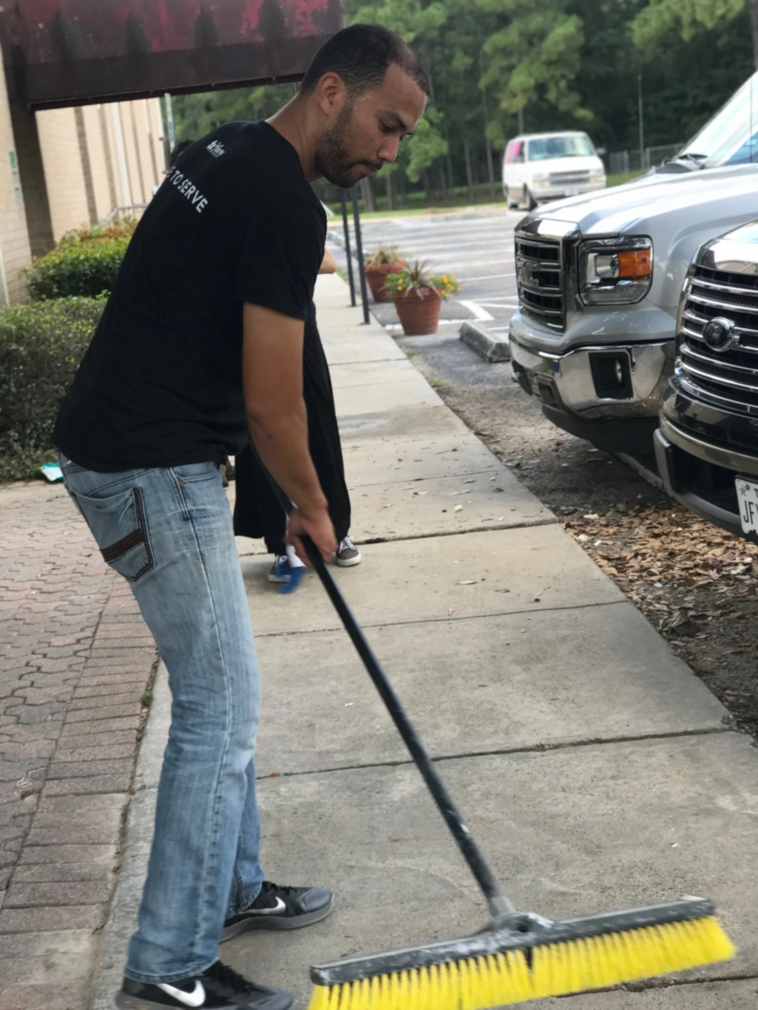 Volunteer Steven Trujillo making a difference. In small but tangible ways, each individual volunteer helped local residents and the local church school get back to business again.