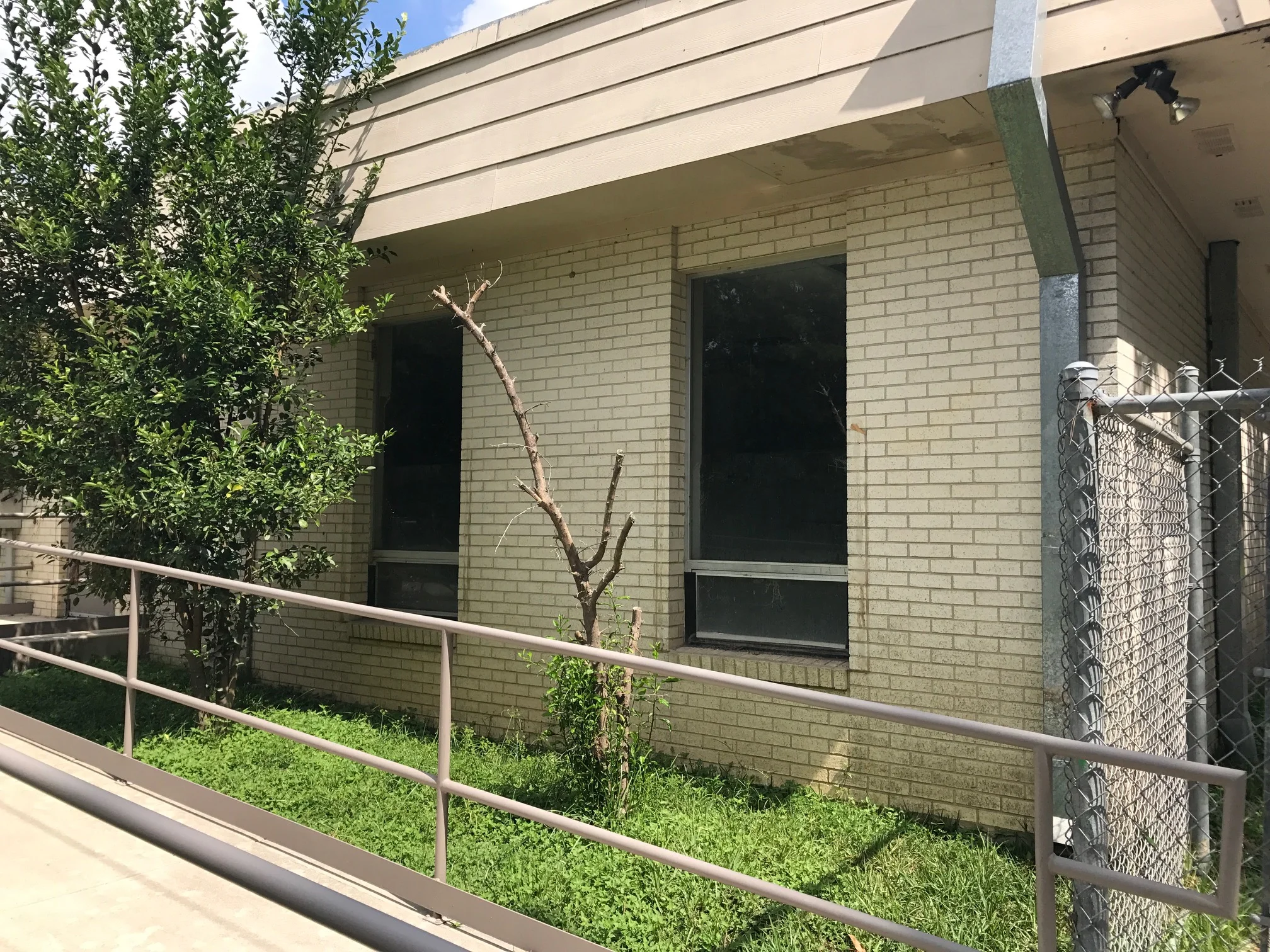 If you look closely, half way up the windows you can see a line where the water level was at its height. During and right after the storm, first responders had to access the area by boat.